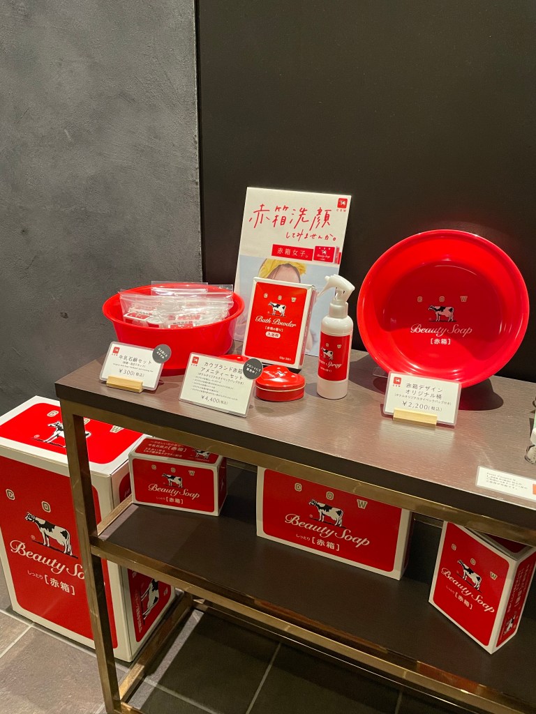 1樓有販售展示與飯店合作的各式特色備品,其中最吸睛的莫過於至今已有超過90年歷史的赤箱牛乳,以天然牛乳和角鯊烯作為保濕成分,搭配淡淡的玫瑰香氣,溫和滋潤,深受大眾喜愛。
